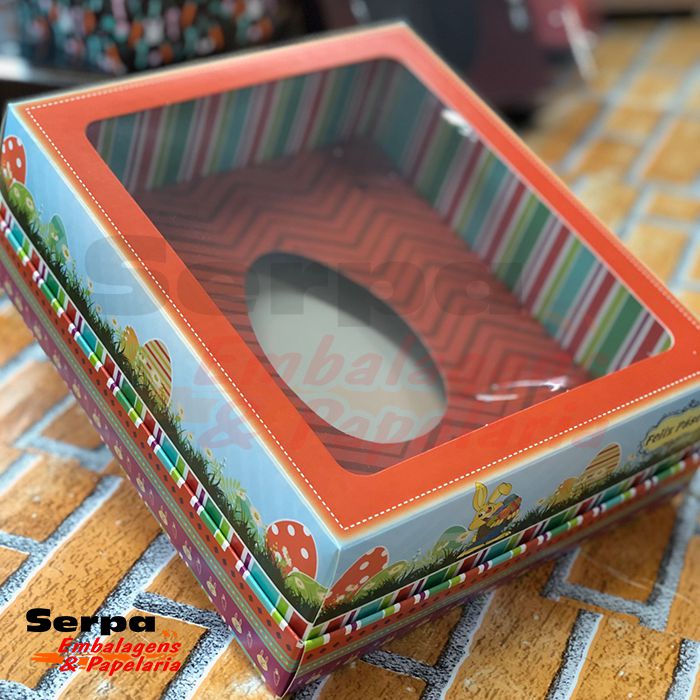 Caixa Ovo de Colher. Tampa com visor transparente e berço interno com furação para colocação de colher.