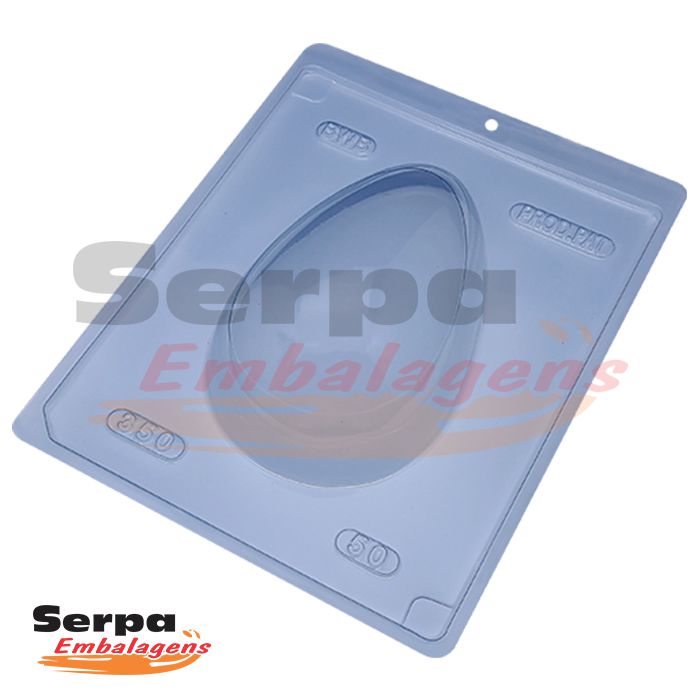 São duas formas de PVC com uma folha de silicone entre elas, o que permite que você faça a casca do ovo sem ter que colocar diversas camadas de chocolate.