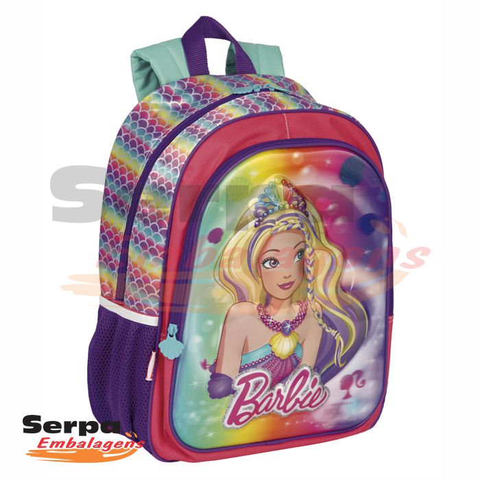 A Mochila Grande Barbie 18X vem com todo o encanto do fundo dos mares. Produzida em sua grande parte de Poliéster, sua frente é em EVA com painel frontal holográfico. Possui alças anatômicas que proporcionam maior conforto para os ombros. Bolsos laterais de redinha para colocar pequenos objetos e deixa-los sempre a mão, bolso frontal com zíper e puxador de metal e ainda tem identificador no verso para colocar o seu nome.