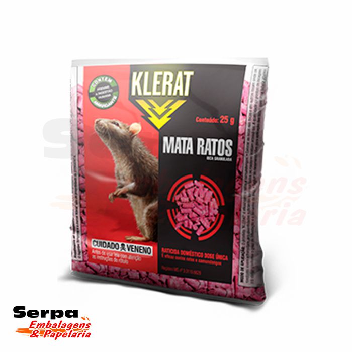 É um raticida indicado para controlar altas infestações. Seu modo de ação não causa desconfiança nos demais roedores da colônia, fazendo com que continuem a consumir as iscas. A apresentação KLERAT MATA RATOS ISCA GRANULADA é indicada para uso em locais internos e secos.